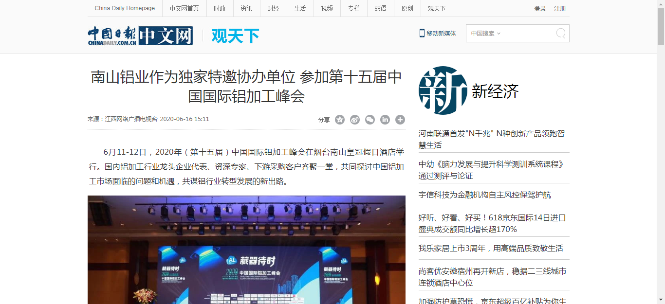 南山鋁業(yè)作為獨(dú)家特邀協(xié)辦單位 參加第十五屆中國(guó)國(guó)際鋁加工峰會(huì)-中國(guó)日?qǐng)?bào)