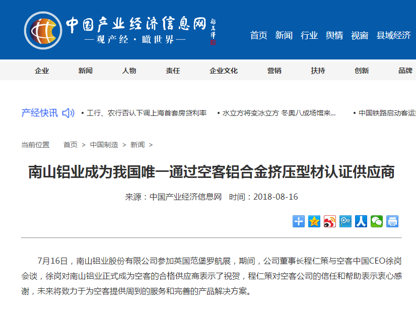 上證報(bào)訊 日前,備受矚目的全球最大鋁行業(yè)盛會(huì)——第12屆國際鋁工業(yè)展覽會(huì)暨鋁業(yè)大會(huì)(2018德國)在德國杜塞爾多夫盛大開幕,以高端制造為主題,突出“一站式解決方案”的產(chǎn)業(yè)鏈優(yōu)勢(shì)兼顧綠色環(huán)保的理念的南山鋁業(yè)在展會(huì)上受到眾多專業(yè)觀展者的高度關(guān)注。公司展示了近年來在汽車輕量化、航空航天等高端產(chǎn)品制造方面取得的最新成果。展會(huì)期間,南山鋁業(yè)董事長程仁策帶領(lǐng)高管團(tuán)隊(duì)與寶馬、奔馳、皇冠、百威等國際一流企業(yè)就汽車板認(rèn)證、罐料年度合同等事宜進(jìn)行了富有成效的交流,取得了豐碩成果。