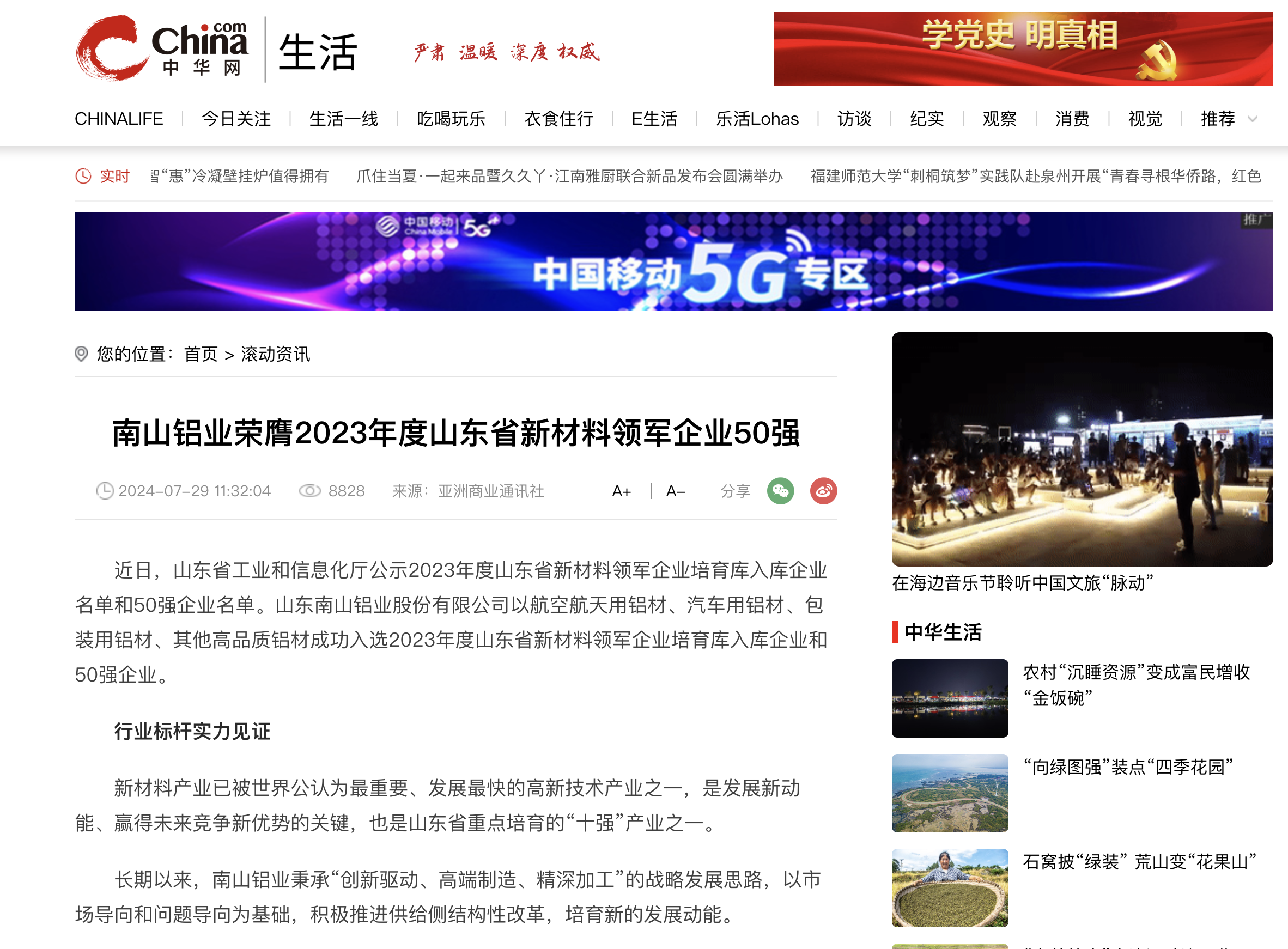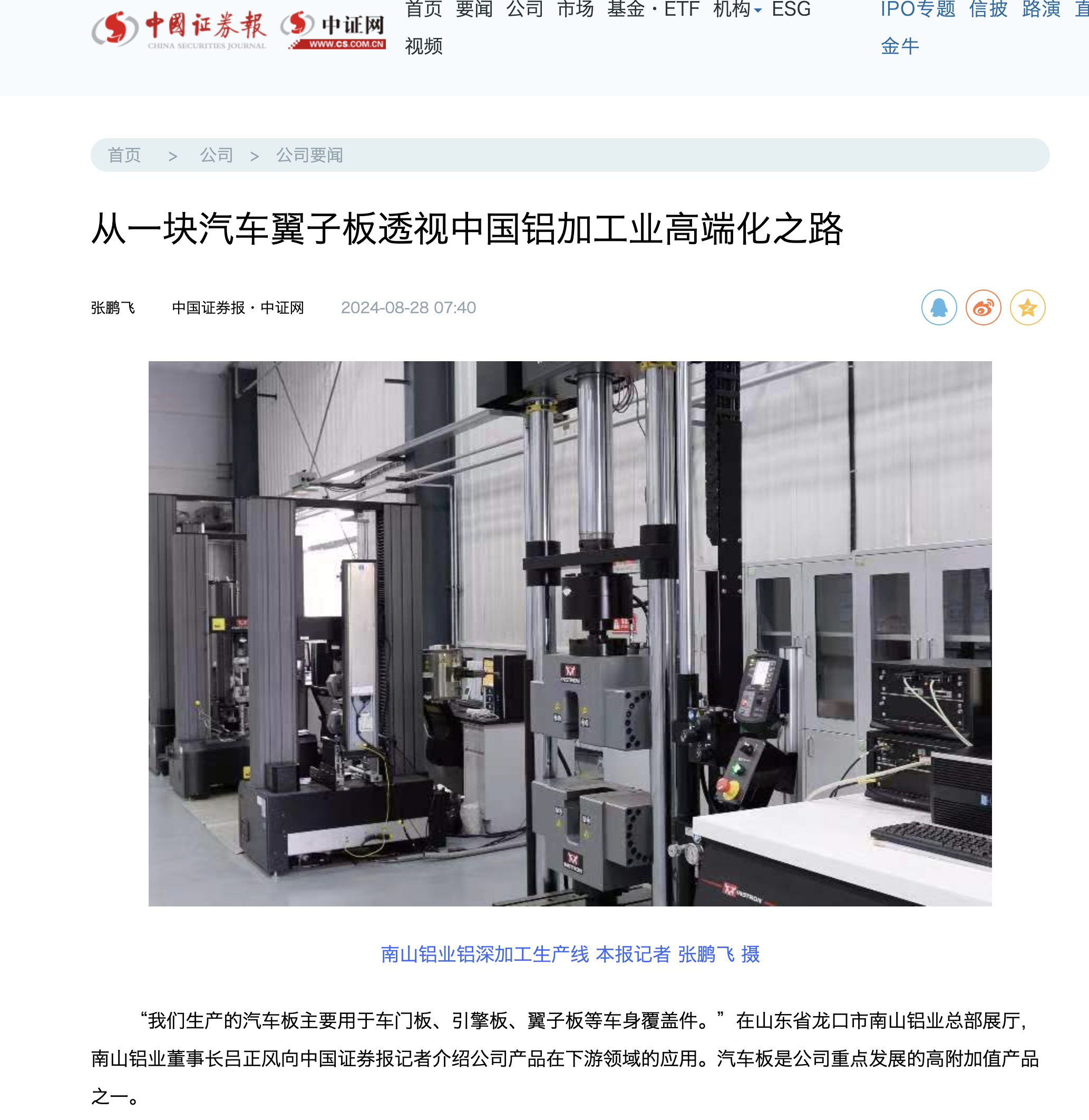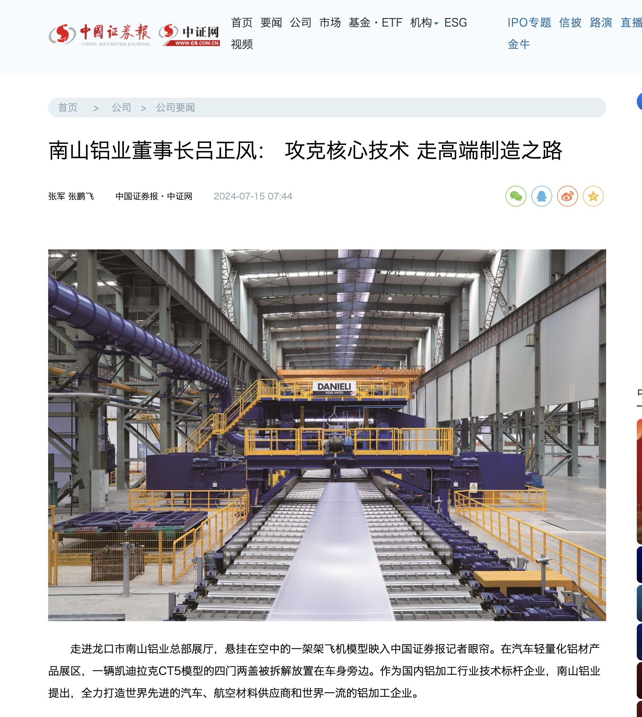 10月24日,山東衛(wèi)視《山東新聞聯播》報道了南山鋁業(yè)以設備更新賦能產業(yè)升級,欄目以南山鋁業(yè)高品質再生鋁保級綜合利用項目為例,剖析了南山長期以來重視技改創(chuàng)新,通過設備更新促進市場競爭活力的前瞻舉措,點贊地方政府以政策支持為企業(yè)加碼,助力企業(yè)升級增效、高質量發(fā)展。